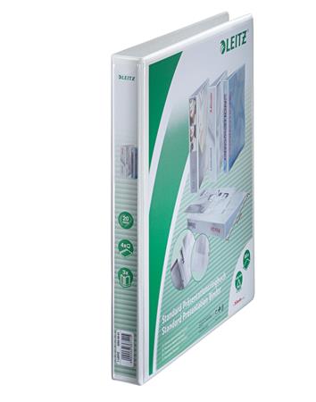 Gyűrűs könyv, panorámás, 4 gyűrű, D alakú, 38 mm, A4 Maxi, PP, LEITZ, fehér