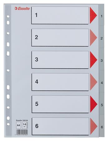 Regiszter, műanyag, A4, 1-6, ESSELTE, szürke