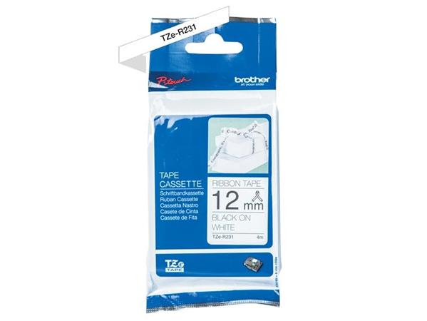 Feliratozógép szalag, selyem, 12 mm x 4 m, BROTHER, "TZe-R231", fehér-fekete