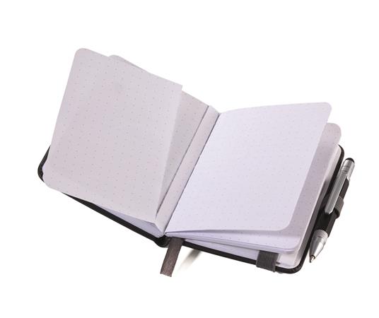 Jegyzetfüzet, exkluzív, A7, pontrácsos, 64 lap, keményfedeles, fekete golyóstollal, TROIKA "Lilipad+Liliput", fekete