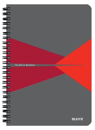 Spirálfüzet, A5, kockás, 90 lap, PP borító, LEITZ "Office", szürke-piros