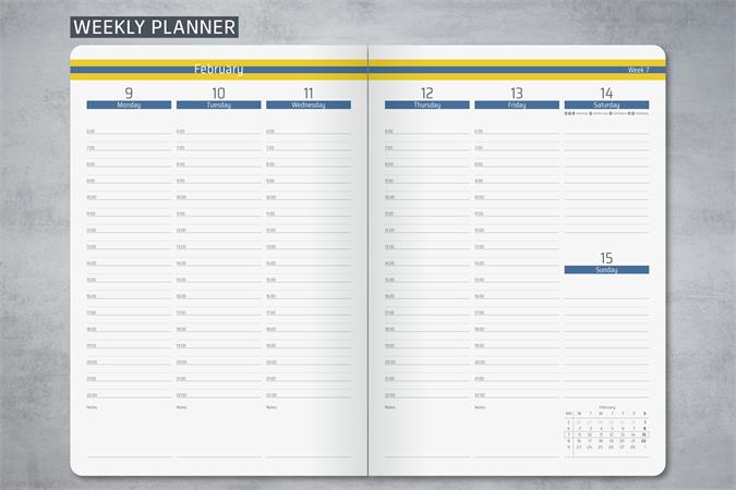 Naptár, A5, heti, 2026, kemény borító, SIGEL "Linescape", kék-sárga