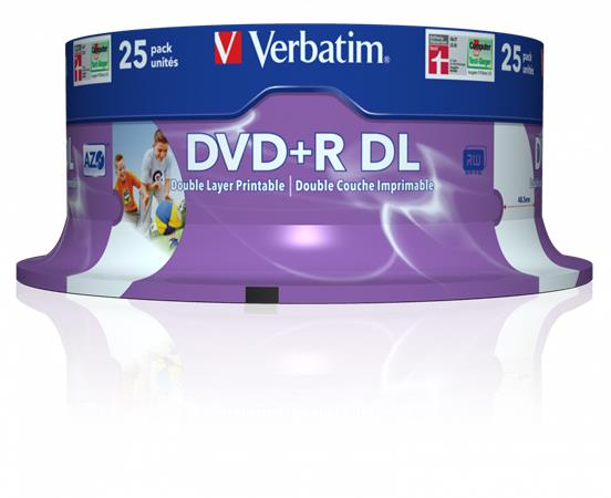 DVD+R lemez, kétrétegű, nyomtatható, no-ID, 8,5GB, 8x, 25 db, hengeren, VERBATIM "Double Layer"