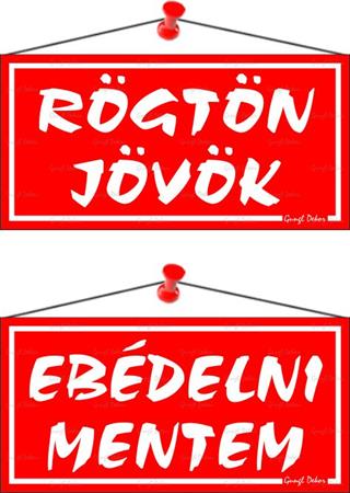 Rögtön jövök/Ebédelni mentem információs tábla